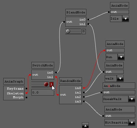In addition, the animation graph offers a flexible way to control animation state. The graph can be seen as a state machine. Each nodes have their own states, set of parameters and they depends on the whole graph state.